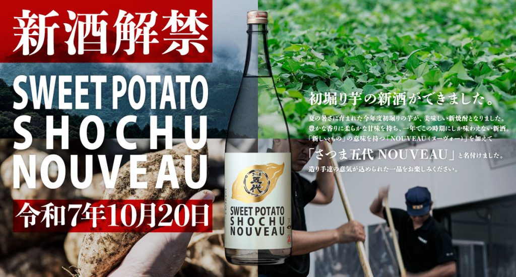 この時期、蔵元では新しい年の始まりを迎え、新酒の完成に感謝しながら、みんなでお祝いします。今年一番早く収穫されたさつま芋で仕込んだ「五代NOUVEAU」、新酒ならではのフレッシュ感溢れる香りと、この時期にしか味わうことの出来ない旨さをご堪能下さい。